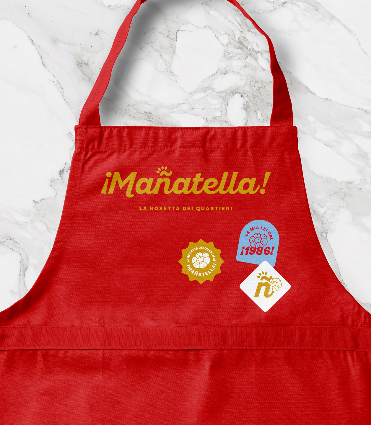 L’identità visiva di Mañatella prende vita da una cultura popolare ricca di ironia e convivialità. Il logo, dalle curve morbide e accoglienti, sembra sorridere: la ñ diventa simbolo solare e caratterizzando, evocando il sole di Napoli, la spiga di grano e un cuore ardente di passione spagnola. I colori caldi e le texture ricordano pane fresco e pomodoro, trasmettendo calore e semplicità.