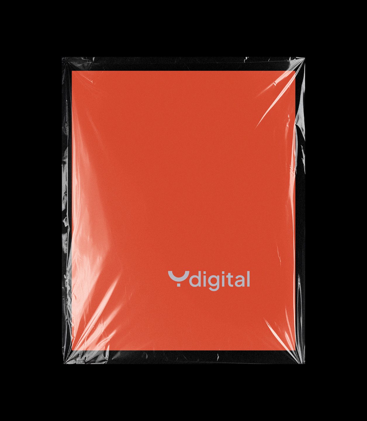 Grande attenzione è stata dedicata alla selezione dei materiali cartacei, concepiti come estensione tangibile dell’identità visiva di Y Digital. Il progetto prevede l’uso di carte differenti – trasparenti, a rilievo, lucide e opache/naturali – per creare un contrasto sensoriale che riflette la complessità e la profondità del brand.