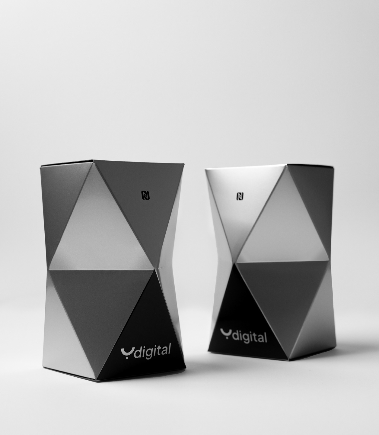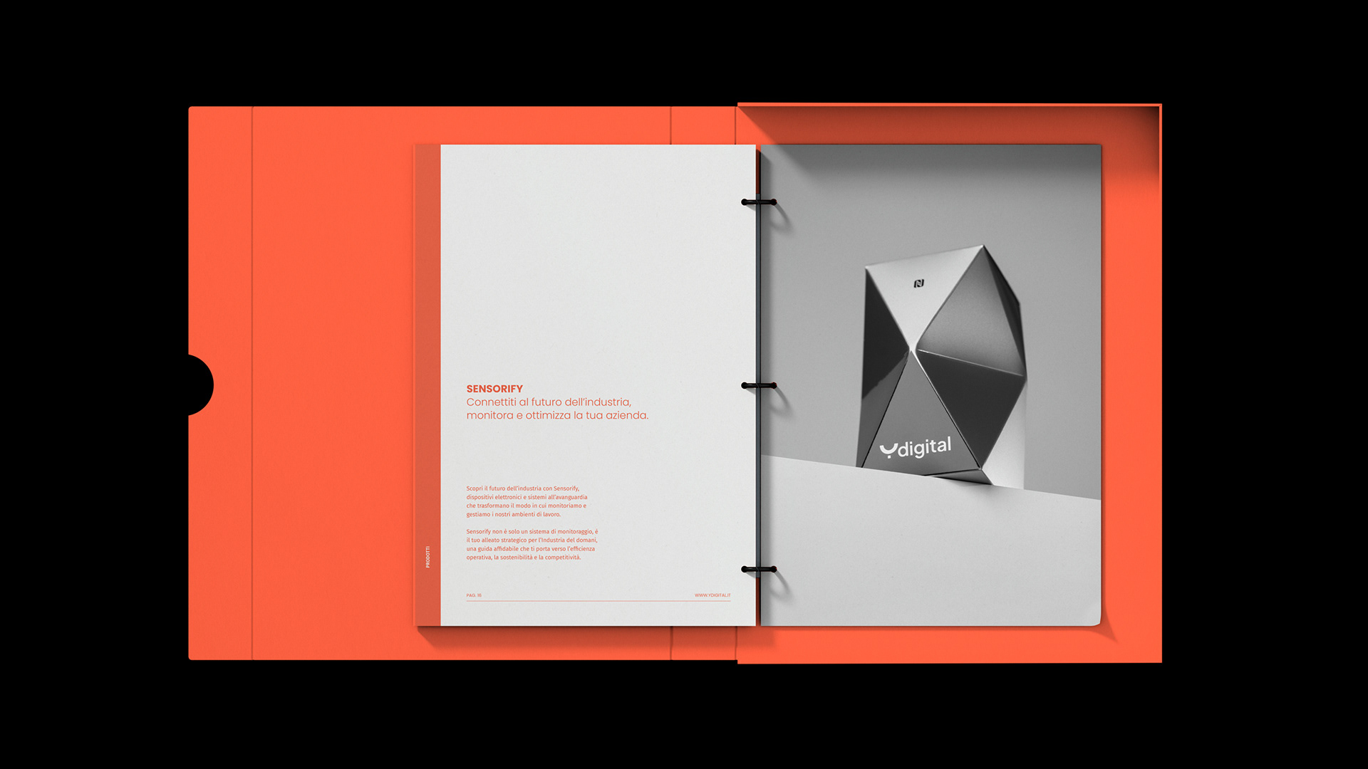 Il packaging progettato per il dispositivo predittivo Sensorify si configura come un’estensione funzionale e concettuale dell’oggetto stesso: un involucro che trascende la mera finalità protettiva per diventare un artefatto sensoriale, parte integrante della narrazione tecnologica e valoriale dell’azienda produttrice innovativa Y Digital. La sua geometria regolare, sfaccettata e armoniosa — un poliedro contemporaneo — riflette l’identità modulare e adattiva del prodotto, evocando al contempo l’idea di una materia intelligente e cangiante, sensibile allo spazio, alla luce, al contesto.